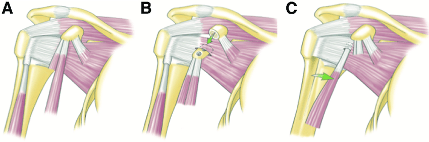2.2.2. Coracoid Transfer: A portion of the coracoid process, along with the attached conjoined tendon, is carefully dissected and mobilized. The surgeon then transfers this bony segment to the anterior glenoid rim, where it is fixated using screws. This transferred bone acts as a barrier, preventing the humeral head from dislocating anteriorly.