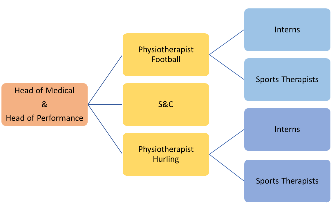 Within the medical / performance team the aim is to decrease injury, sickness and optimise performance. This results in a combined and integrated injury prevention and performance system. The medical team provides evidence-based injury prevention solutions and early management of player / athlete symptoms alongside the rehabilitation and strength and conditioning coaches who understand the needs analysis of the athlete. The Gaelic Games injury scheme claims initiative has generated valuable evidence for injury surveillance allowing understanding of the most common GAA injuries ad potential mechanisms / strategies that could be implemented in reducing this risk.